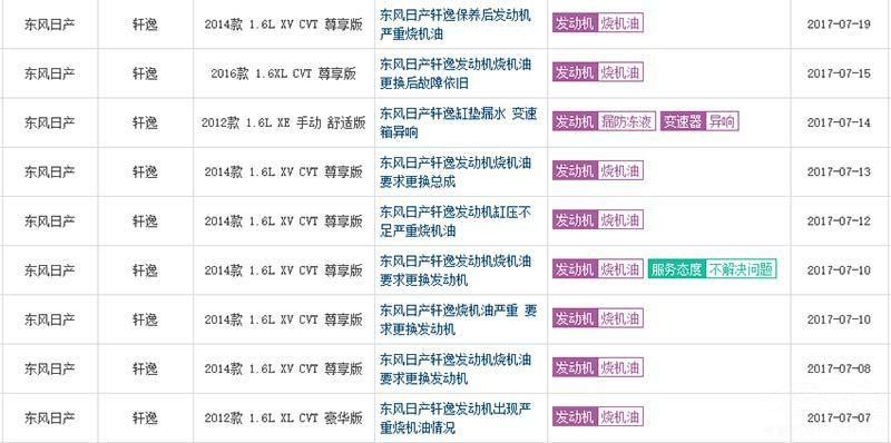 尼桑品牌进入国内已经有好些个年头了,而在国内市场的这么多年里日系也一贯以扎实耐用的品质闻名于整个市场。可就是这样一个十分注重产品质量的品牌却在现今的热销车型——轩逸上发生了发动机烧机油的现象,而更奇葩的是这居然还是一个批量的问题这可不得不让人对它的质量产生怀疑。毕竟就连以烧机油著称的徳系也是在5年或10万公里以后才会产生类似的现象,而它却发生在2年的准新车上实在让人难以接受。