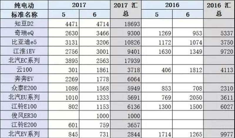 在2017年6月的电动车销量前十的排行中除了比亚迪e5、江淮iEV系列部分车型和北汽EU系列外其它均为微型电动车。而从销量前三中的知豆D2、奇瑞eQ和比亚迪e5中也可以看出现今的微型车才是电动车行业的领头羊。