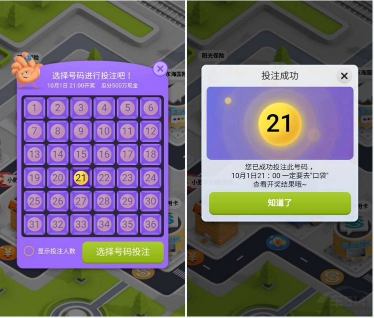 另外,如果在游戏过程中,玩家抵达“投注”格子,会能触发36选1游戏,玩家可从1-36个号码中选择任意一个不重复的号码进行投注。截止到10月1日21点,所有参与游戏的用户,将会瓜分500万现金红包,听上去是不是很心动呢?不过,这项活动必须在10月1日20:30前完成,而且需要登录自己的高德账号。