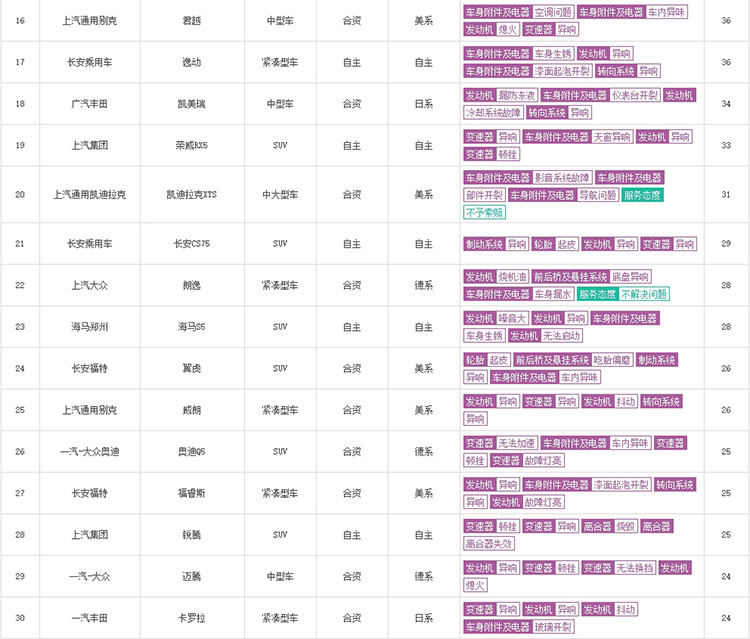 翼虎 投诉排名24