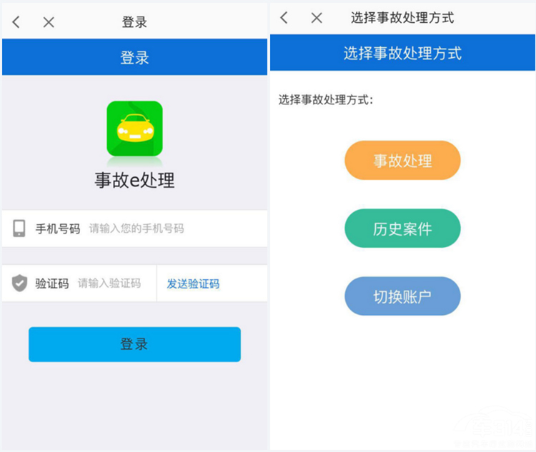 具体操作方法,打开高德地图的“事故e处理”功能之后,会弹出登陆页面,需要用户输入手机号和验证码。然后,大家会进入到“事故e处理”的功能页面,包括事故处理、历史案件、切换账户三种选项。