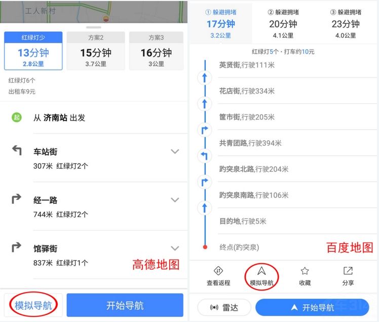 提前熟悉道路 模拟导航高德/百度显差距