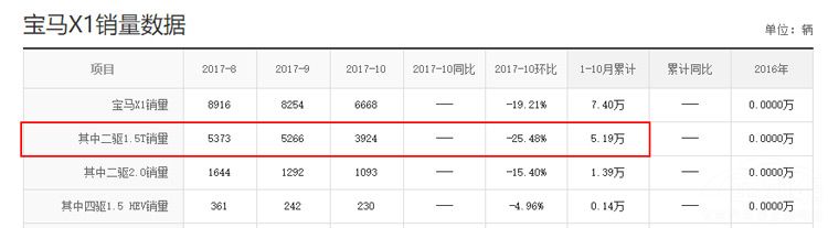 在普通品牌中,三缸发动机已经遭到了消费者的笔诛口伐,那么在对行驶品质要求更高、消费群体更苛刻的豪华品牌中,三缸发动机还有市场吗?以宝马在国内最畅销的SUV--X1为例,看三缸发动机能否被豪华品牌消费者所接受。于是,我们分析了宝马X1截止到10月份的销售情况。