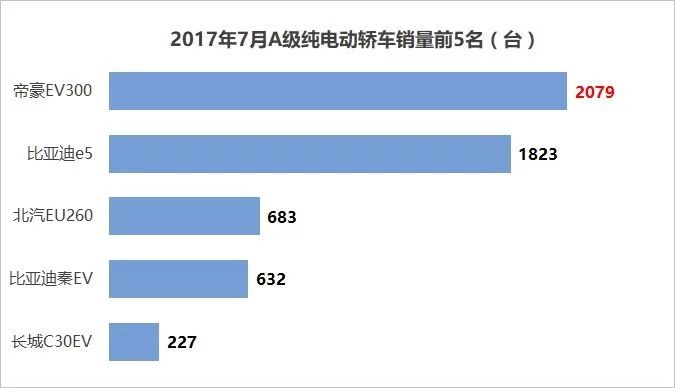 近日,7月份新能源汽车终端销量排行榜出炉,纯电动乘用车依旧占据市场主力,占比76%,同比增长61%,插电式占比24%。其中,A级电动车主要靠北京市场拉动,今年7月A级电动车同比增37%,环比6月增长26%,其中,帝豪EV300力压比亚迪e5、比亚迪秦EV、北汽EU260等市场主力产品,以2079辆的优异表现再次问鼎A级纯电动轿车的销量冠军。长城首款纯电动新能源汽车C30EV上市3个月,增速较快。