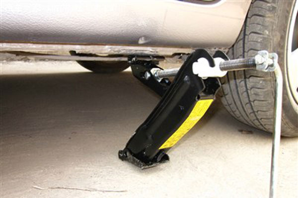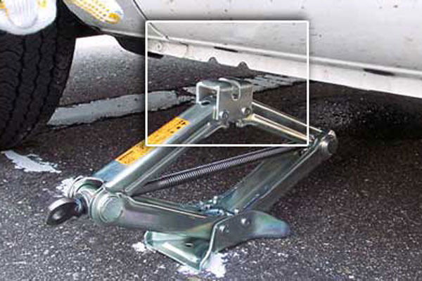 顶车这一步是整个换备胎过程中,最危险的一个步骤。如果顶车顶不好,轻则车辆损坏重则人员受伤。顶车前首先要把手刹拉起,避免车辆在顶车过程中移动,如果有防溜车的装置需要安装在换胎侧的另一个轮胎上。顶车使用的便携式千斤顶有两种,都是通过手摇动升起车辆。在安装千斤顶时一定要保持在平面,顶车的位置很重要。现在很多车都有顶车胶只要固定撑好顶车胶就可以,而没有顶车胶的车辆需要顶在车边的钢板梁上,和车接触的一侧一定要固定好。