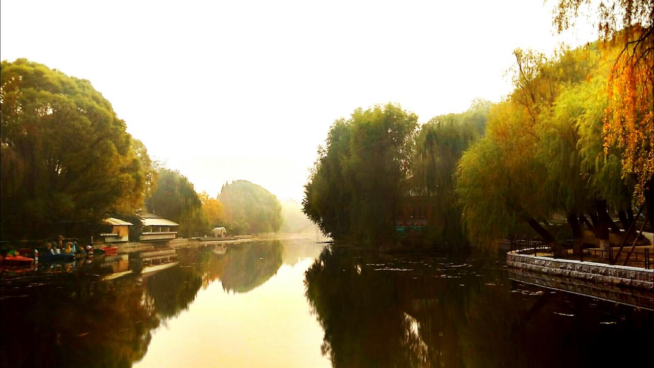 第1天 湖面上有处凉亭,虽然设计简洁,但是古朴的风格,与岸边的树木交相辉映。