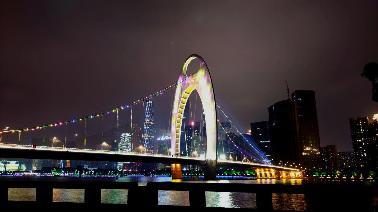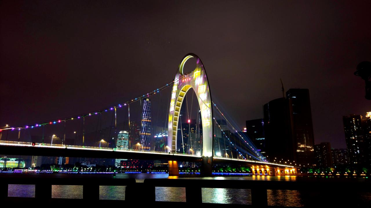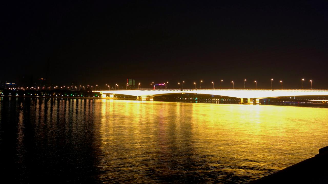 第1天 一回头桥塔的灯光又换了,这次是动感的暖色系。