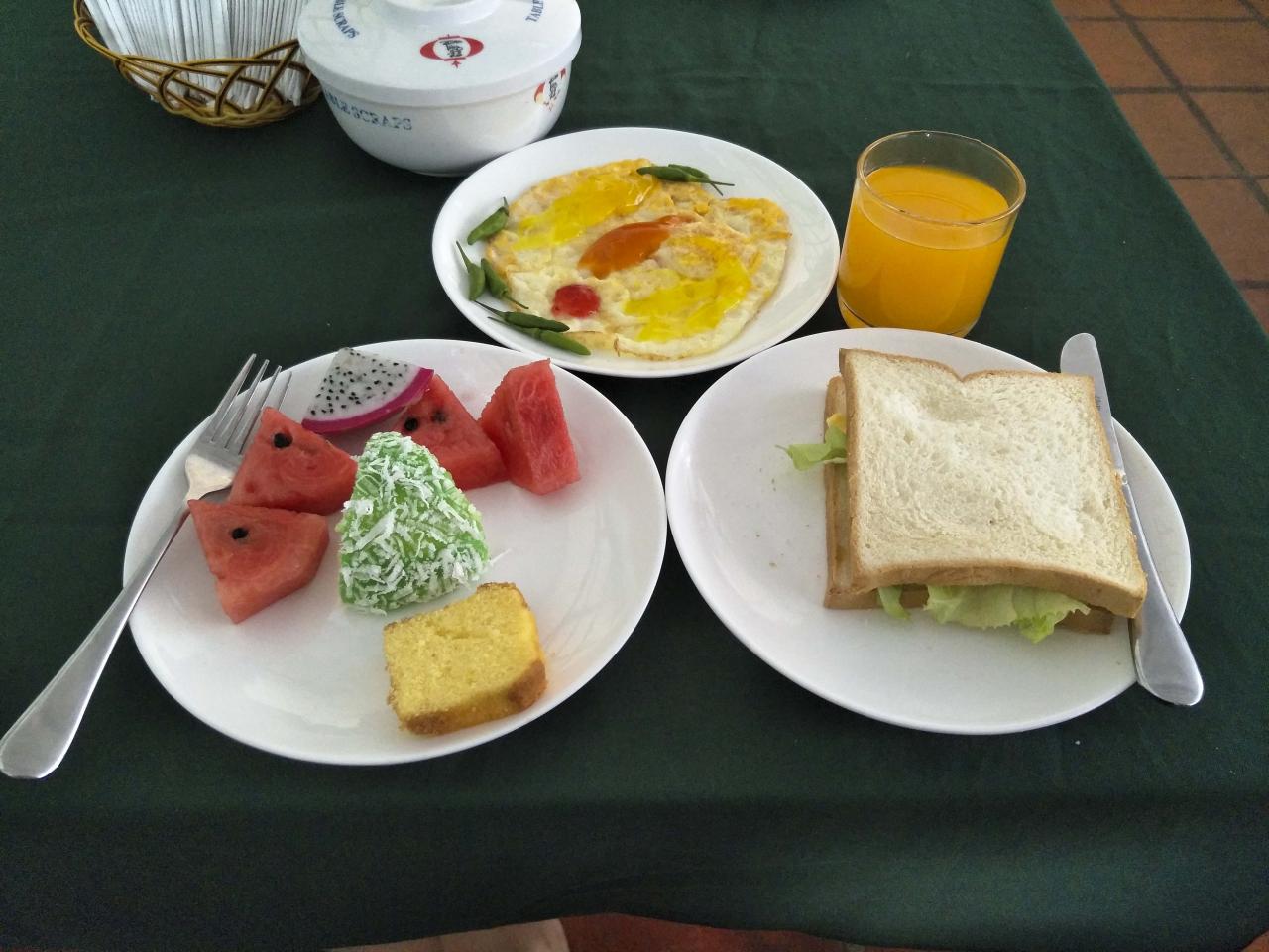 第1天 正所谓一天之际在于晨,美好的一天要从美味的早餐开始。到了越南自然要入乡随俗,油条、煎饼、豆浆这些肯定是见不着了!三明治加一份煎蛋,配上水果沙拉和橙汁,也能够让人元气满满。