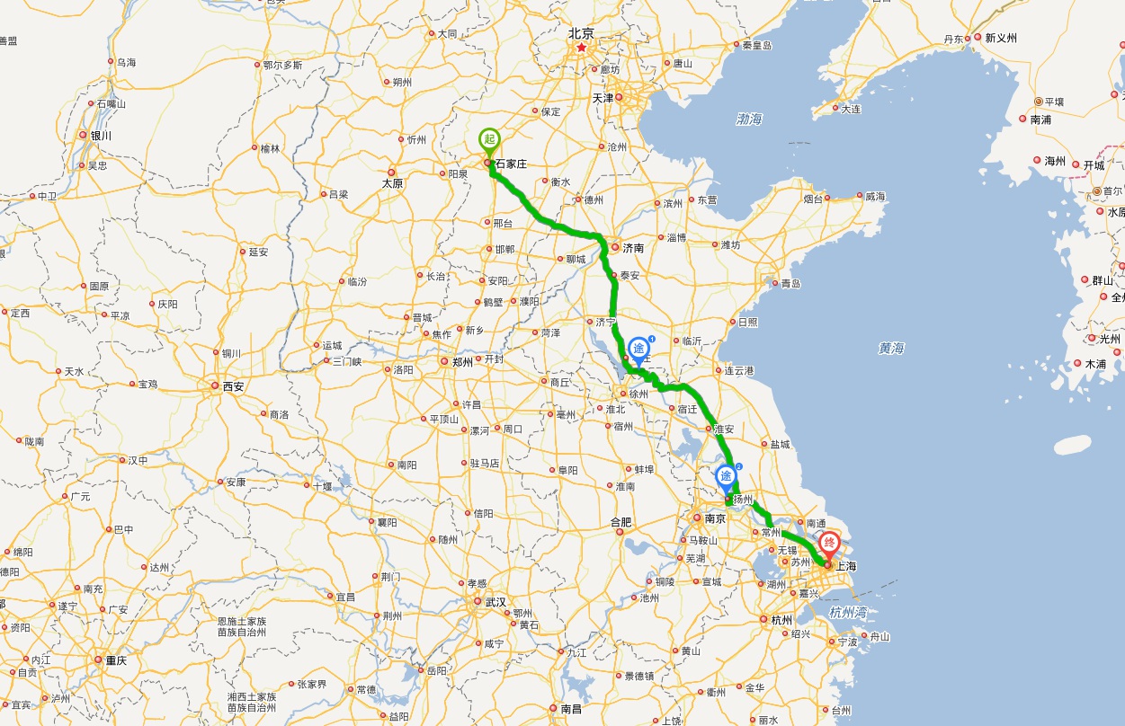 第1天 【行程路线】 我们将从石家庄出发,途径台儿庄、扬州、最后抵达上海完成这次自驾游活动,共1200公里。