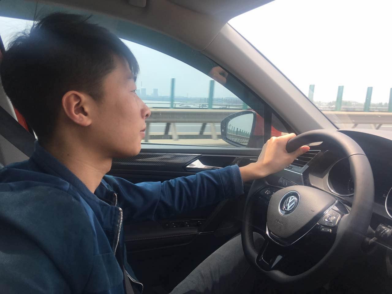 第1天 这位帅哥就是我们车314的试驾员,人称“刘一手”汽车知识丰富,对这个行业十分热爱。昨天,他开的是东风风神AX5,今天换过来开大众途观L。凭良心讲我真心不想坐他的车,因为实在刺激要命,他开车太猛起步后油门就能踩到底。配上这台顶配途观L的2.0T高功率发动机,瞬间就能加速到几十迈,我唯一能做的就是抓紧扶手了......