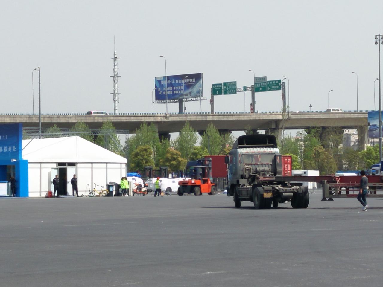 ![]() - 第1天 首先,给大家回顾下这几天在上海车展的见闻。这张图是车展前一天拍摄的,不少新车还没有到位。工作人员正在紧张的忙碌之中,车展场馆外面的保安,也相当的严密拍照都有可能被喝止!