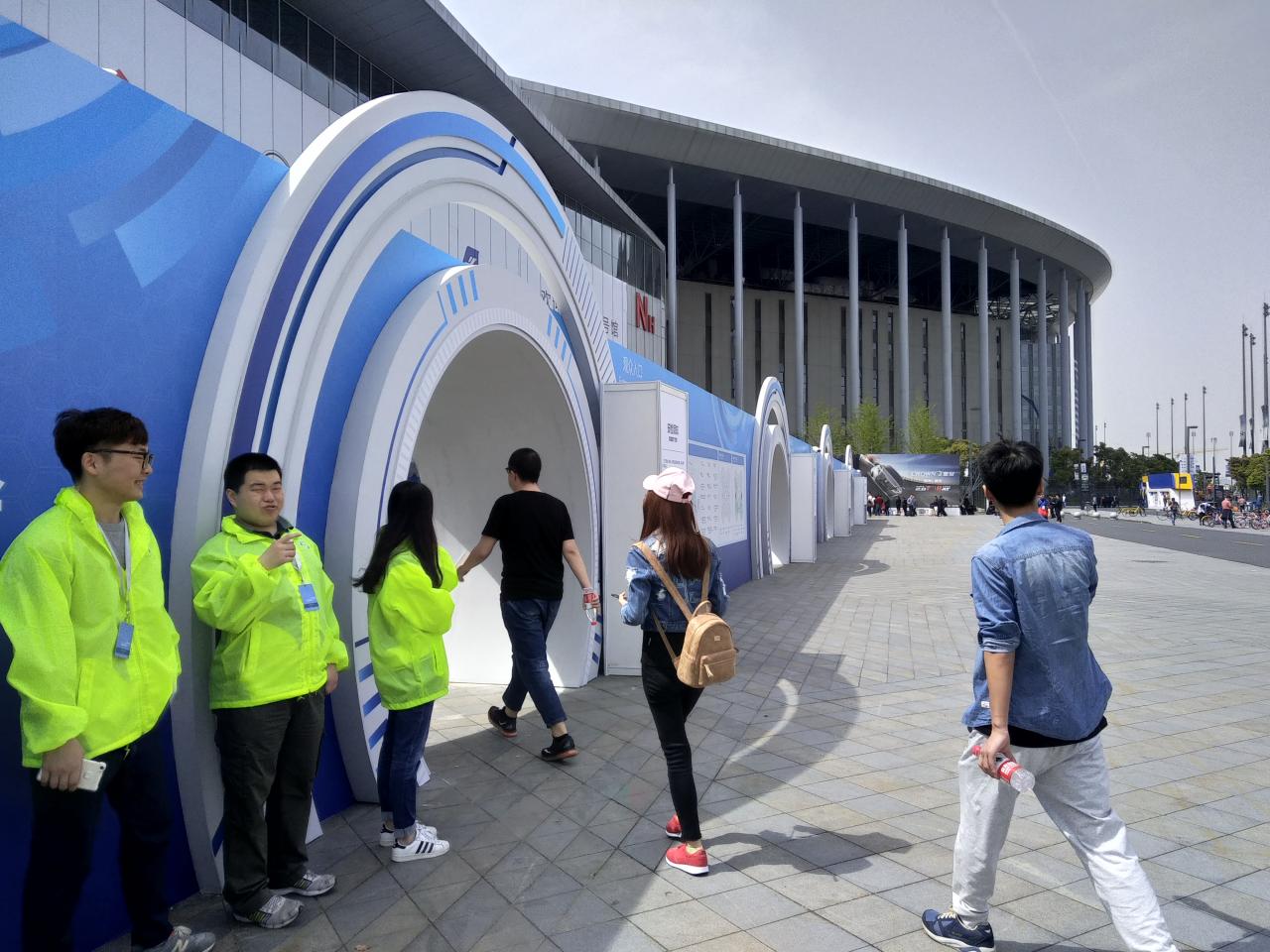 ![]() - 第1天 进去之前先在展馆外面,来张大合影。统一的服装,看我们的团队很有集体感吧!
