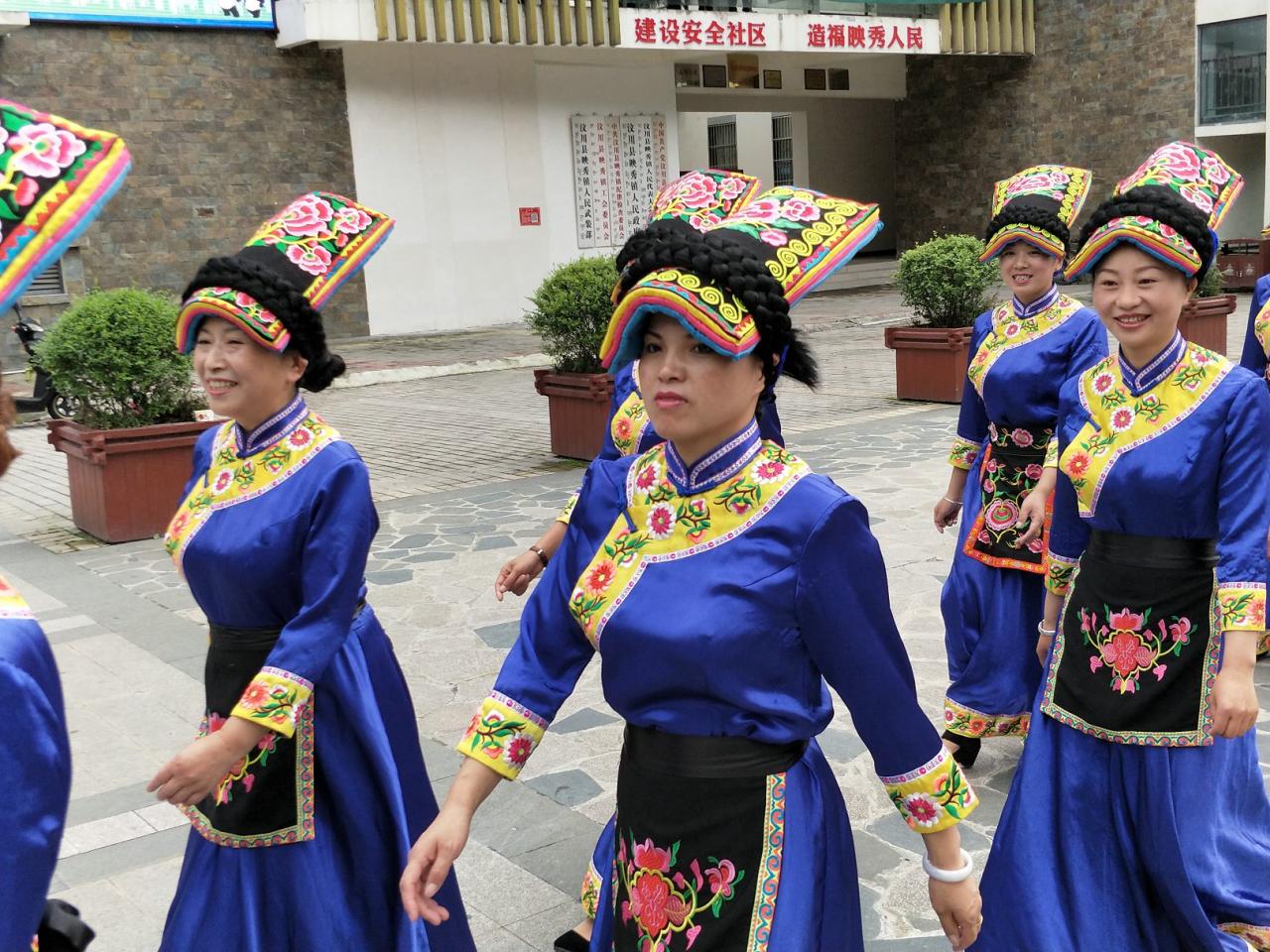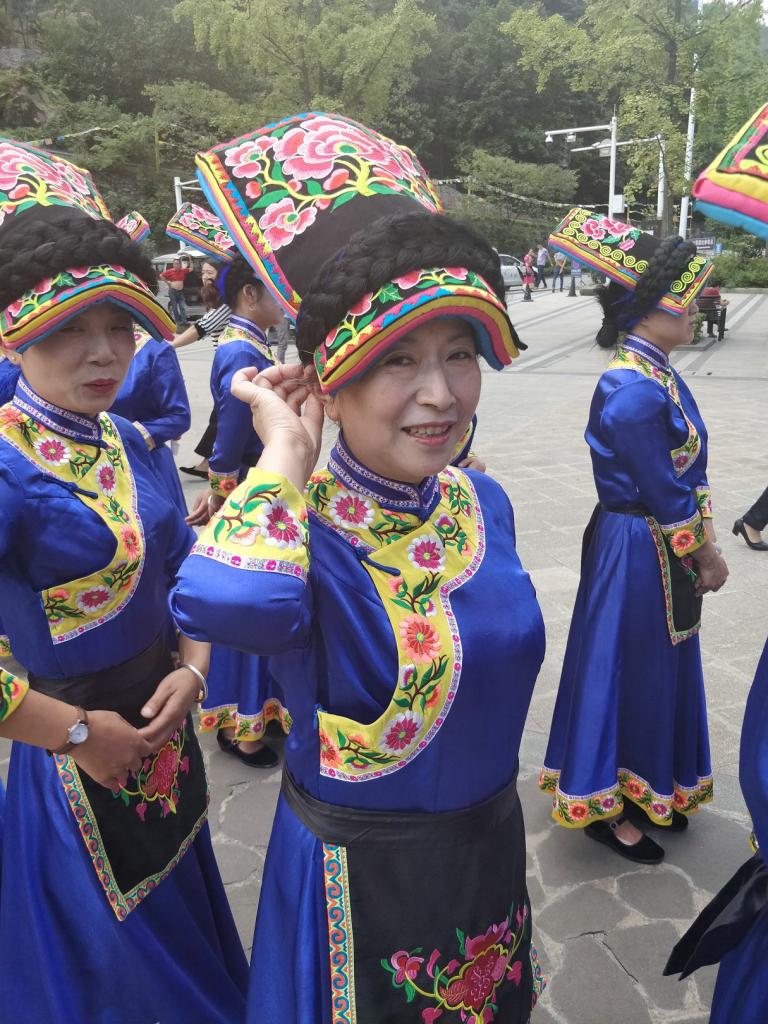 第1天 比赛队伍准备入场,这支身穿蓝色民族服饰的队伍有20余人,每一个人都面带微笑,看起来信心满满!