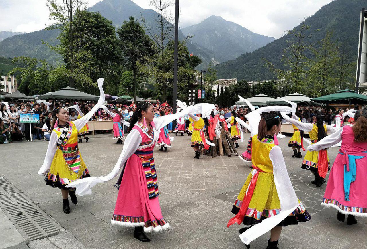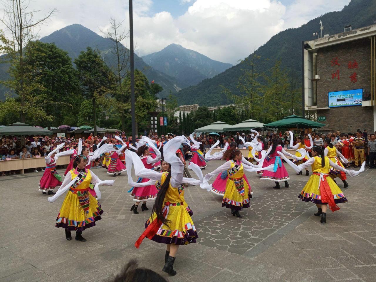第1天 比赛中,映秀镇的每个村子都会派出舞队参加。华美的民族服饰让本就优美的舞蹈更加迷人。