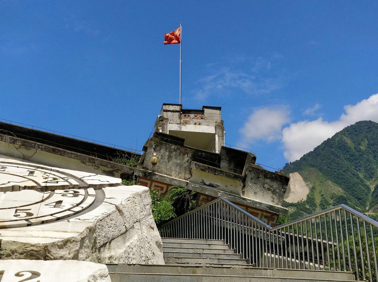 第1天 进入遗址,我们再一次被震撼了。教学楼只剩下了残垣断壁,足以看出地震破坏力度之大,人在自然面前显得无能为力。在房顶上,一面国旗迎风飘扬,很是显眼。汶川地震让大家感受到了祖国的强大,更让全世界看到中国人民众志成城,团结抗震的精神。