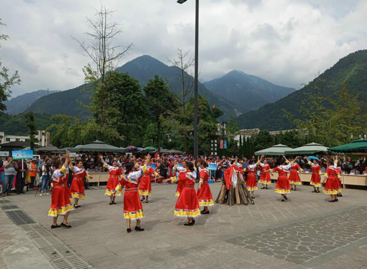第1天 从展馆出来后,整好遇到映秀正在举办的锅庄表演,正好缓和一下沉重的心情。锅庄是藏族的民间舞蹈,又称为“果卓”、“歌庄”、“卓”等,藏语意为圆圈歌舞,是藏族三大民间舞蹈之一,分布于西藏昌都、那曲,四川阿坝、甘孜,云南迪庆及青海、甘肃的藏族聚居区。