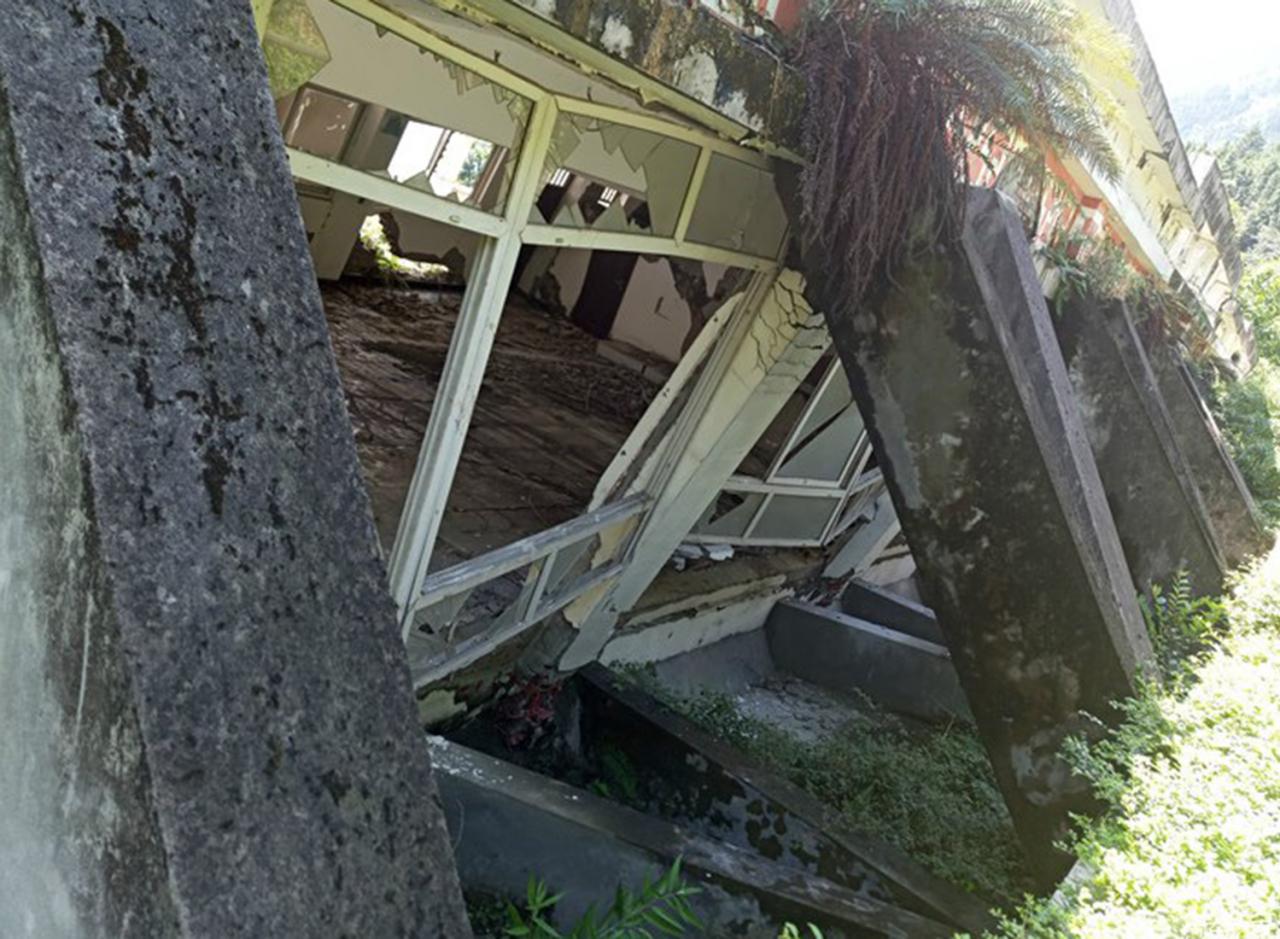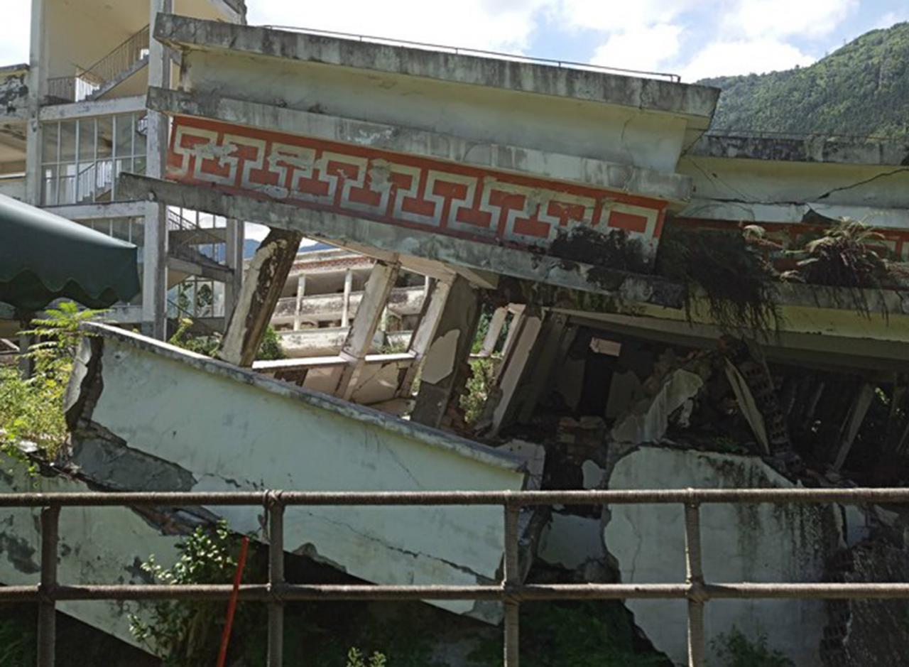 第1天 这里也是他们的教学楼,现在只能看到最上面这一层,其余全部都坍塌了!