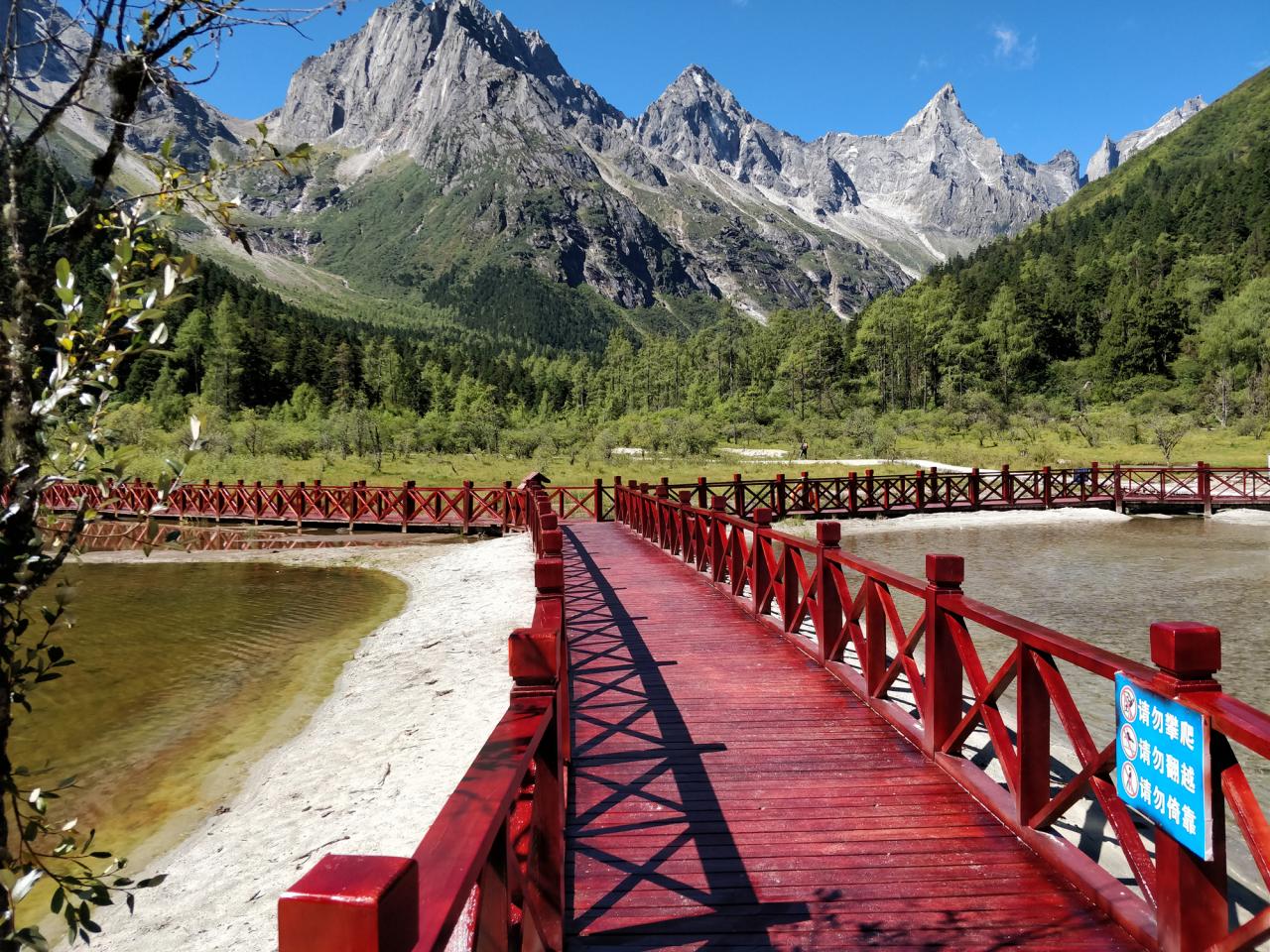 第1天 水滩上的小红桥,还真不知道大山中间能有这番景象,美!美!美!