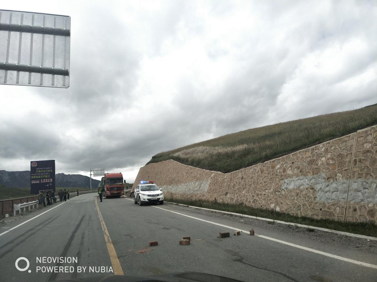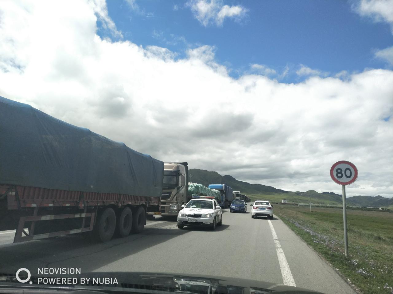 第1天 对向的车道警察在查超限超载,所以之前宽阔的马路被堵的水泄不通。