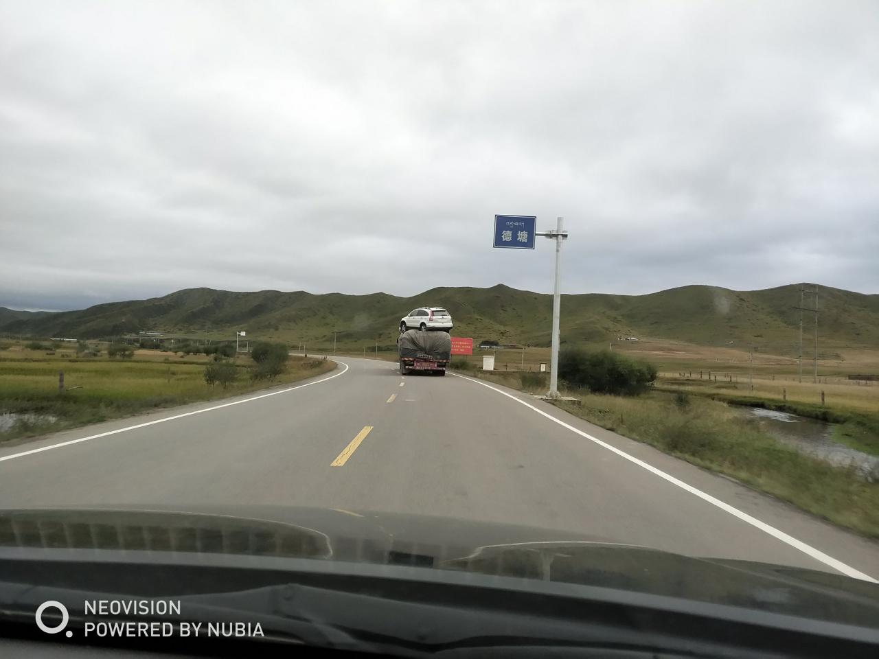 第1天 再一次遇到了这辆车,很担心上面的小轿车会掉下来,这掉的可不是馅饼。