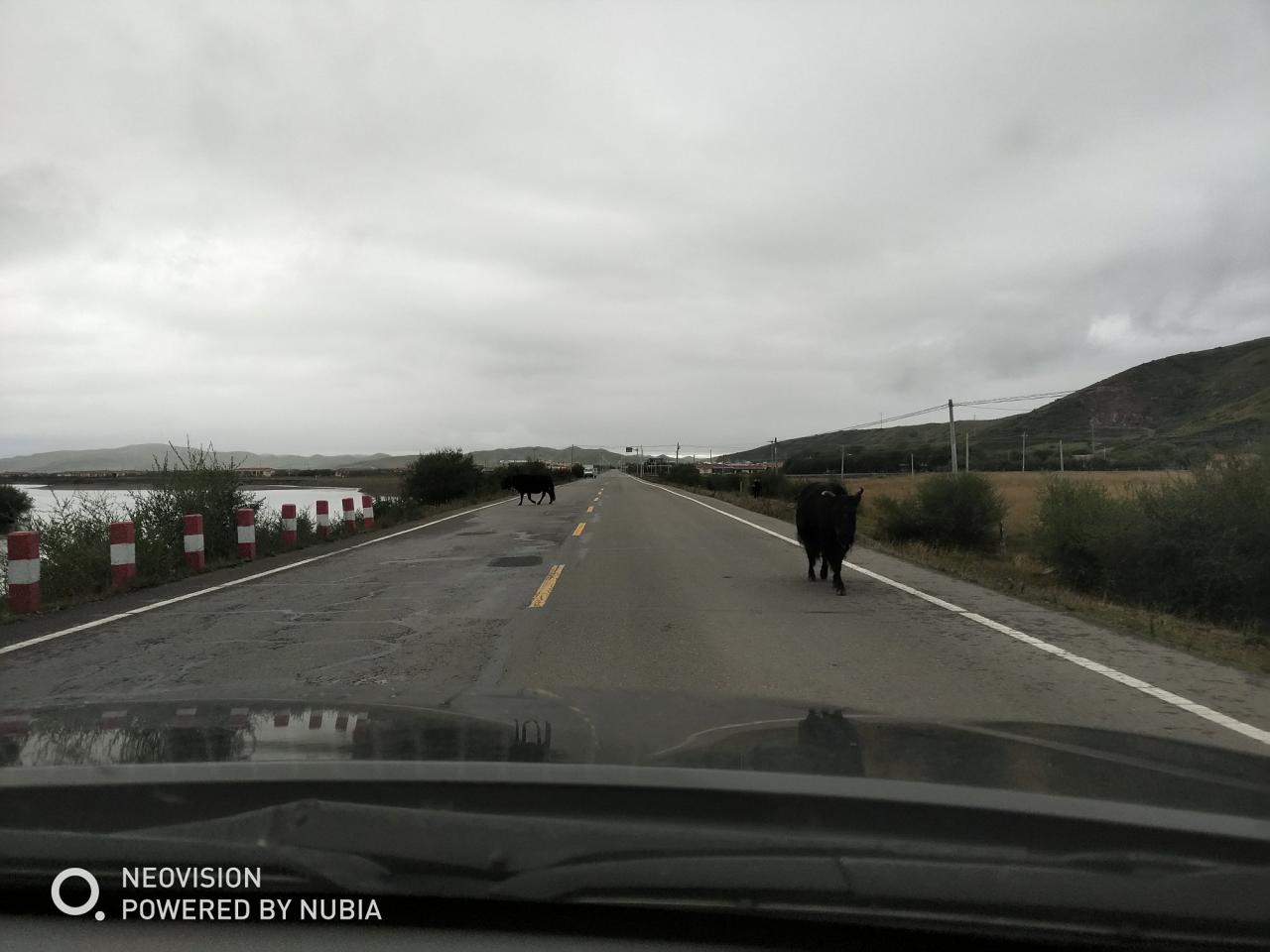 第1天 这两头牦牛只能算是小打小闹,后面的惨烈车祸才叫人不忍直视。在草原行车一定要控制好车速,一马平川不代表安全,指不定什么时候就窜出了一群群的动物。