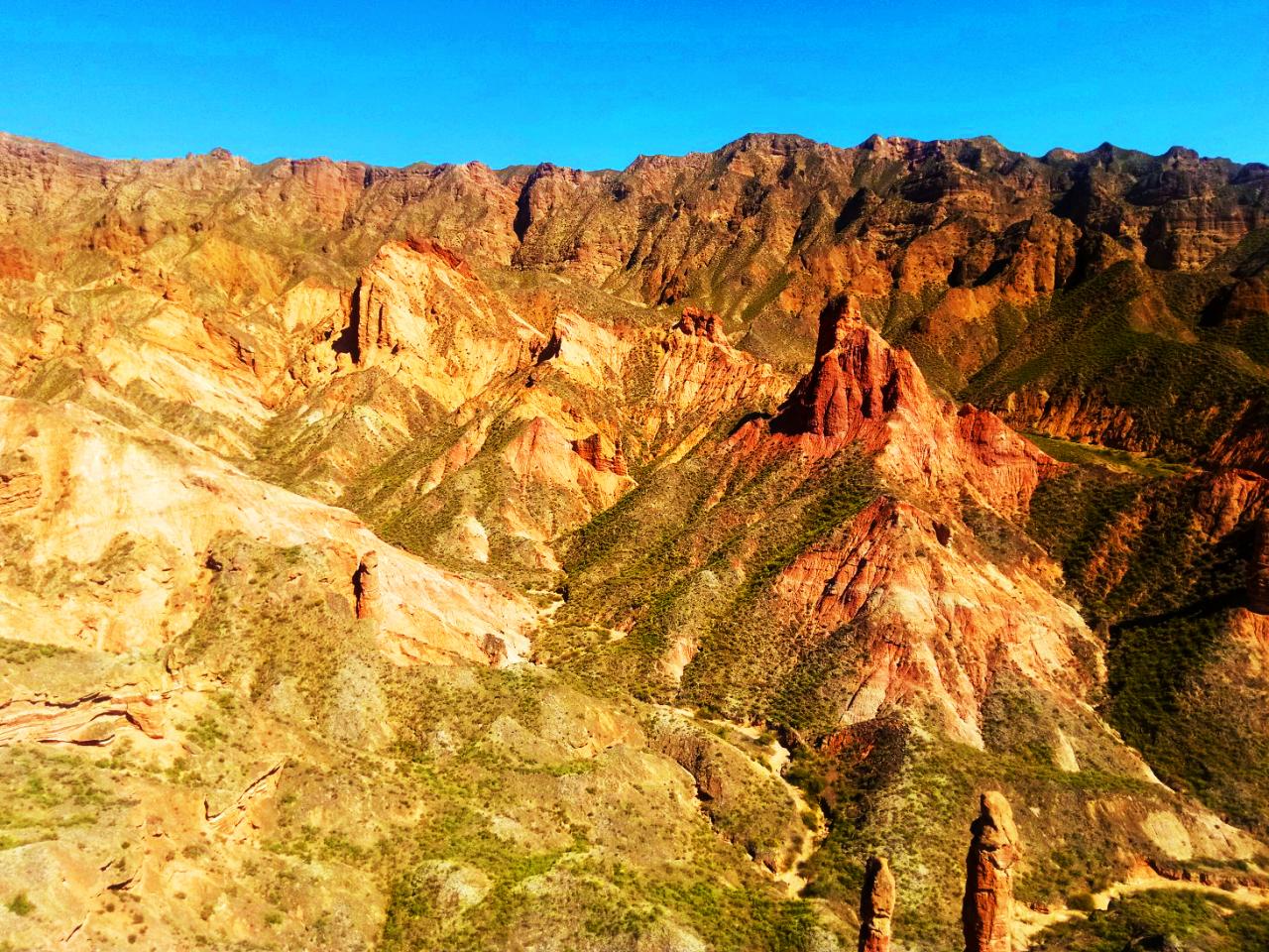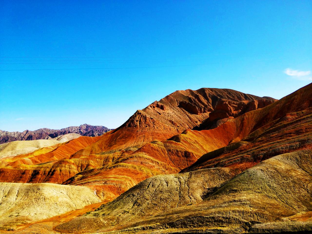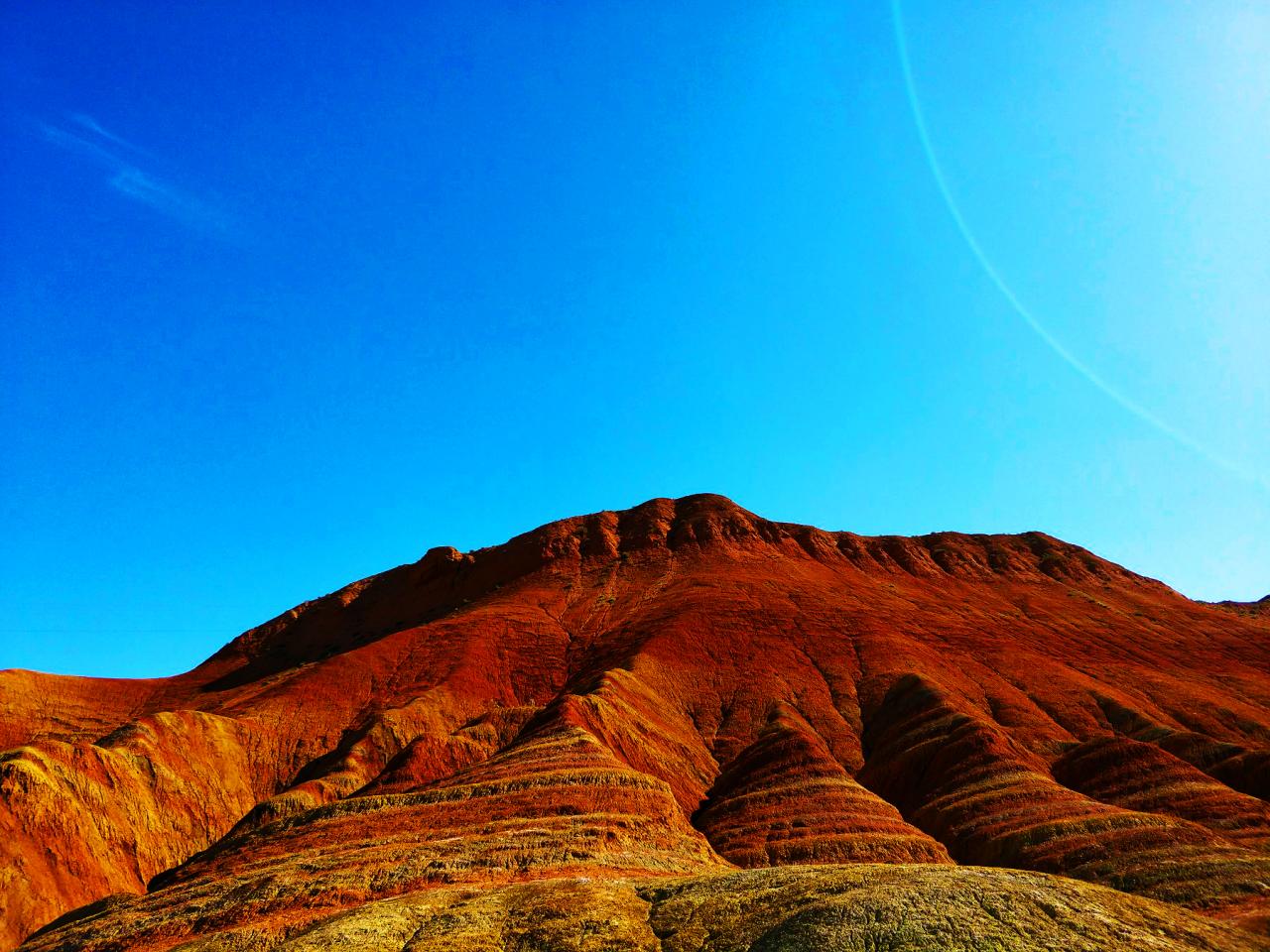 第1天 造型奇特,色彩斑斓,气势磅礴,把祁连山雕琢得奇峰突起,峻岭横生,五彩斑斓,当地少数民族把这种奇特的山景称为“阿兰拉格达”(意为红色的山)。