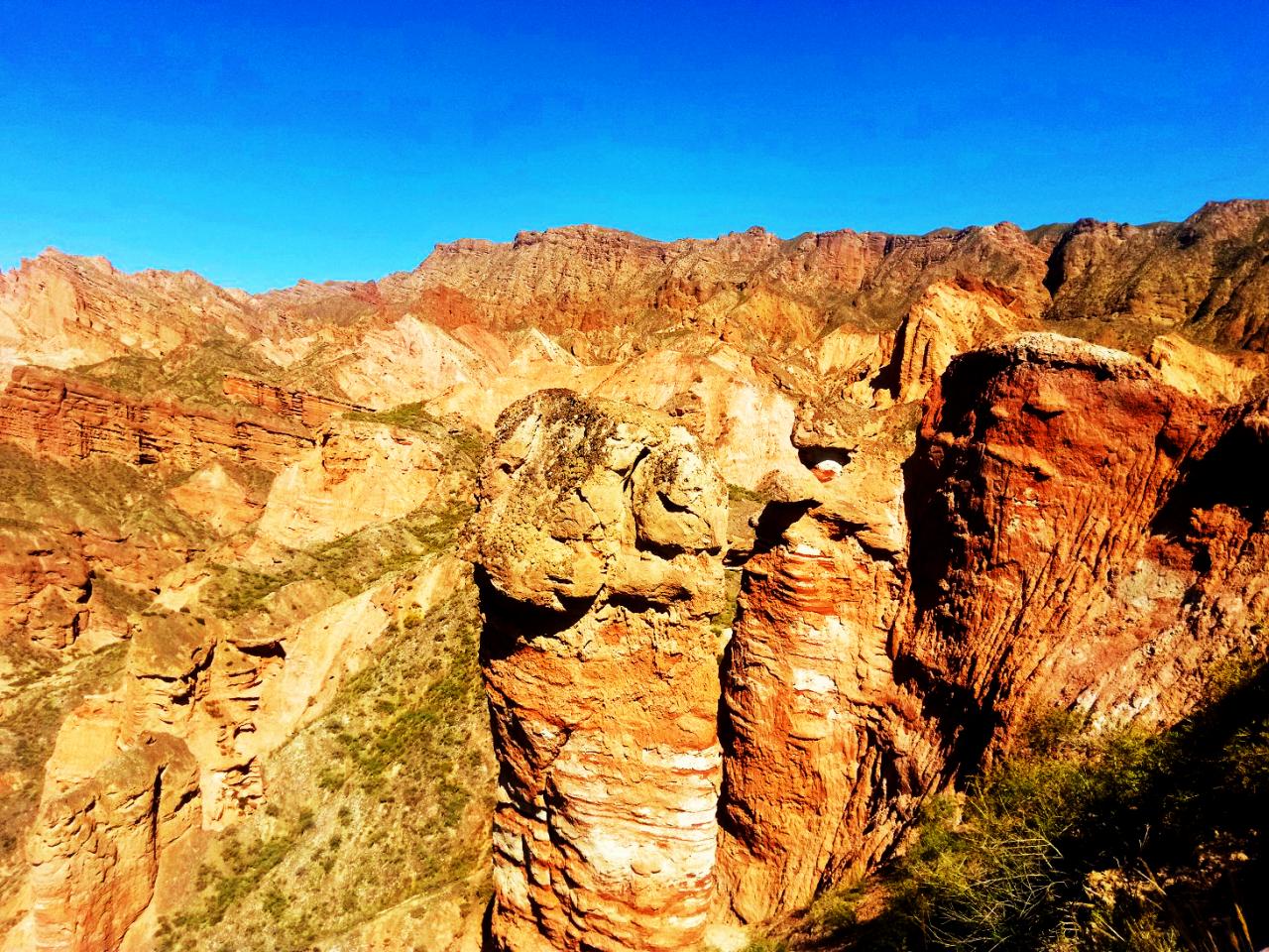 第1天 景区内广泛分布丹霞崖壁、石墙、石柱、尖峰、丘陵等地貌形态,尖峭挺拔,连绵不断,气势宏伟。