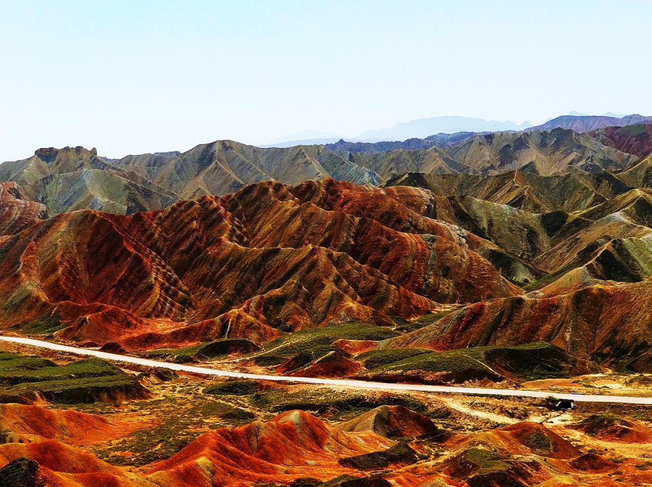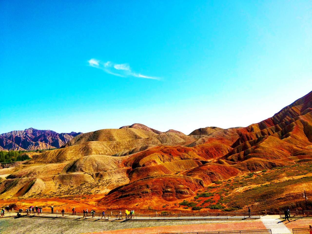 第1天 张掖丹霞地貌是国内唯一的丹霞地貌与彩色丘陵景观复合区。景观区主要包括冰沟丹霞风景区和七彩丹霞风景区两大景观区,两地间隔约12公里。