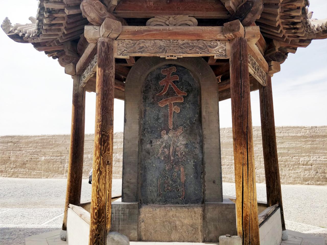 第1天 关西门外百余米处,有清代刊立的“天下雄关”石碑。清嘉庆十四年(1809)肃镇总兵李廷臣视察嘉峪关防务时,见这里南有祁连雪山,北有黑山,关势雄伟,便写下“天下雄关”四字并勒石为碑。