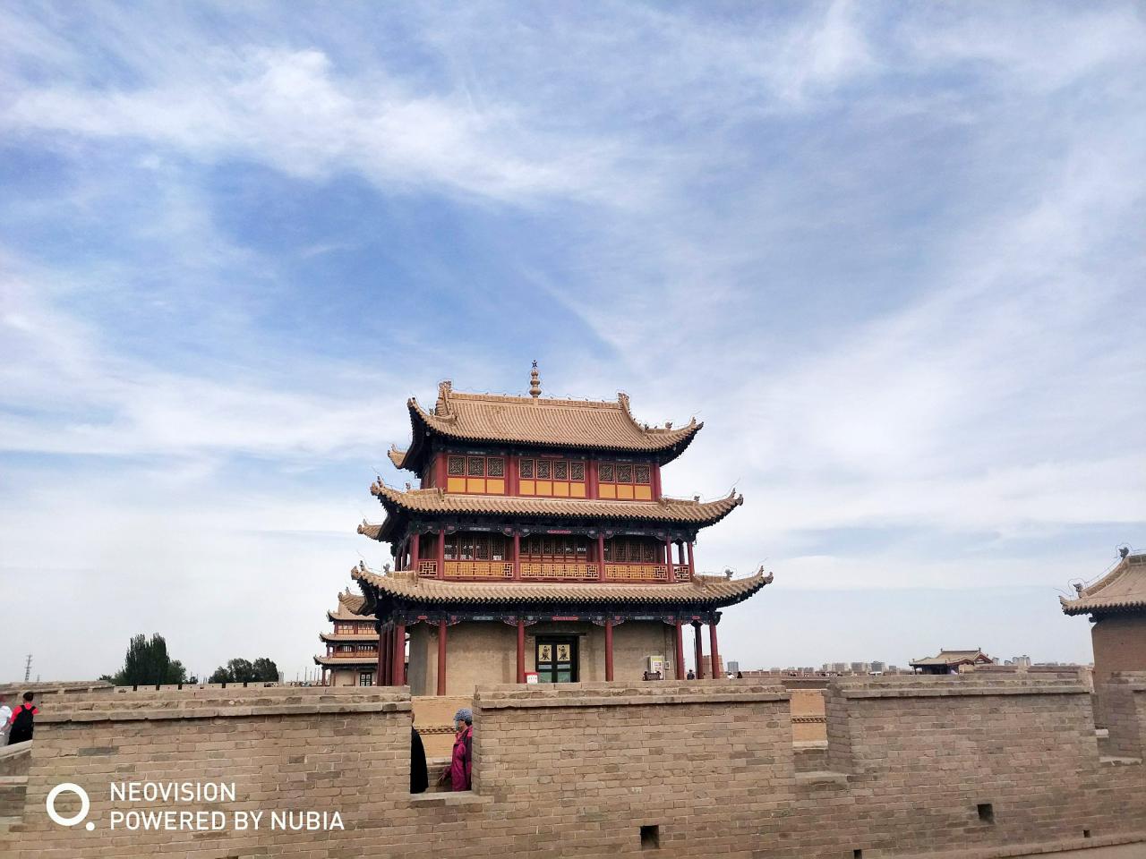 第1天 嘉峪关内城墙上建有箭楼、敌楼、角楼、阁楼、闸门等共十四座,关城内建有游击将军府、井亭、文昌阁,东门外建有关帝庙、牌楼、戏楼等。