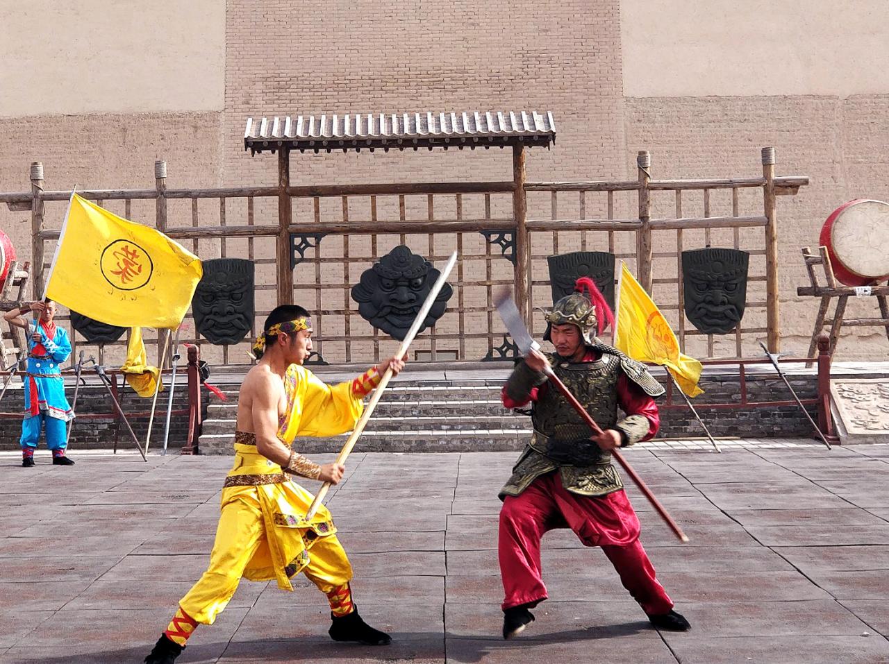 第1天 场内工作人员在进行演出,模拟当时明军对战少数名族的场景。
